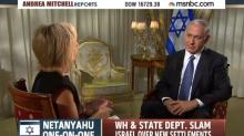 In a contentious interview with Benjamin Netanyahu aired on her 12 p.m. ET hour MSNBC show on Thursday, host Andrea Mitchell badgered the Israeli Prime Minister by repeatedly parroting a nasty attack line from the Obama administration: "...the White House and the State Department say that the new settlements in Arab East Jerusalem undercut your commitment to peace. That it could poison the atmosphere, it could turn the world against you. What is your response to that, when the President says that to you?" [Listen to the audio]