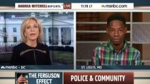 On her 12 p.m. ET hour MSNBC show on Tuesday, host Andrea Mitchell invited on Ferguson protester Rasheen Aldridge, whom she praised for having "made such an impact" and getting the attention of the Obama White House. Aldridge proceeded to slam the police: "I believe we really need to get down to the meat of the problem and really figure out, how we hold the police accountable for their actions?...the reports and statistics and everything is out there of how they're making their money – 20 and 40% off the back of ticketing young African-American men and women."