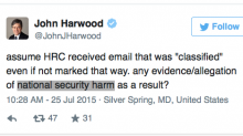 As we have seen many times in the past, CNBC Chief Washington correspondent John Harwood has been reliably liberal. In fact just a few hours ago, Newsbusters ran a story featuring Harwood once again spinning for Hillary Clinton. Therefore it is notable when even a team player such as Harwood gets so upset with the content free Hillary "briefing" that he breaks out in one snarky paragraph after another.