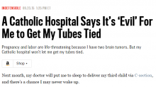 Welcome to the United States, Pope Francis, it's "indefensible" that Catholic hospitals refuse to perform tubal ligation surgery on women. That is the thrust of a Daily Beast piece written by one Jessica Mann, who explained her plight in a September 23 article headlined, "A Catholic Hospital Says It’s ‘Evil’ For Me to Get My Tubes Tied"