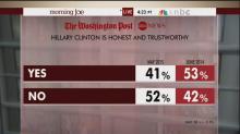 On today's Morning Joe, Joe Scarborough mocked Robby Mook for having, as our Jeff Meyer reported, denied the undeniable, claiming on yesterday's Face the Nation that "no poll" shows Americans don't trust Hillary. Said Scarborough sarcastically: "well, actually, yeah, they do. You have to respect him for saying they don't." When Scarborough confronted Hillary pollster Joel Benenson with the fact that Mook "didn't tell the truth," Benenson replied: "He did tell the truth. He got interrupted by John [Dickerson], who is a great guy. That's the way these shows go." Have a look at the clip: Dickerson didn't interrupt Mook, who had all the time to tell the truth and chose not to.