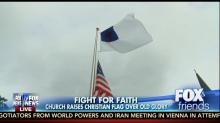 Fox News Channel's Elisabeth Hasselbeck interviewed Pastor Rit Varriale on Tuesday's Fox and Friends over his church's decision to fly a Christian flag over the American flag. Hasselbeck noted how "the move is sparking an outrage on social media," and wondered it was "a fight for faith, or a slam to Old Glory."