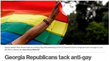 The latest example comes with the headline for Adam Serwer's March 21 story, "Georgia Republicans tack anti-gay amendments onto unrelated bills."  To his credit, Serwer himself avoided needless invective, giving a rather fair description of the controversy at hand, even though it was a bit paltry in space devoted to those favoring the legislation. What's more, Serwer seemed rather incurious as to how the average Georgian feels about corporate interests -- you know, the bad guys in the eyes of the Left when they favor tax cuts and other pro-business moves -- being a significant factor in scotching the bill (emphasis mine):