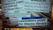 This Morning co-host Norah O'Donnell noted the proposed massive spending was "a controversial move for a state that's pretty deep in debt." Correspondent Nancy Cordes explained: "That's right, $7 billion in debt. But Democrats in Illinois say allocating this money will help to convince the Obama Foundation to locate the Obama Library in Chicago, while many Republicans argue the President's hometown is the front-runner anyway and that this is an expense their state can't afford." [Listen to the audio or watch the video after the jump]
