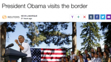 Yesterday, a Reuters story at Yahoo News was headlined "President Obama Visits the Border." That's a pretty remarkable headline, given Obama's quite widely known refusal — except perhaps by low-information Yahoo readers — to visit the Texas-Mexico border or to visit facilities where Unaccompanied Alien Children are being detained by the Border Patrol. The headline, before it was corrected to "President Obama Visits Austin," along with evidence that Google News was still carrying the original headline until just a short time ago, follow the jump.