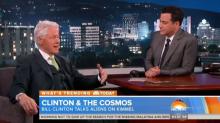 Instead, GMA's Amy Robach enthused, "And finally, former President Bill Clinton isn't ruling out a possible alien invasion here on Earth. He visited Jimmy Kimmel last night and revealed that he did, in fact, look into the possibility when he was president." Talking to co-host and former Democratic operative George Stephanopoulos, she wondered, "George, was it the common topic of conversation in the Clinton administration?"
