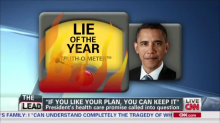 Conservatives across the fruited plain are likely going to be shocked by this - and liberals extremely angered! - but the fact-checking website PolitiFact on Thursday named President Obama's "If you like your health care plan, you can keep it" promise the Lie of the Year.