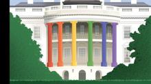 The cover of Monday's issue of New Yorker magazine features an animated picture of the White House with rainbow columns: