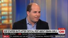 On Monday's At This Hour, CNN's Brian Stelter brushed aside a regular conservative critique about the media – that the press has a double standard about covering controversial remarks from Republican/conservative officials, while ignoring similar comments from Democrats/liberals. Stelter, replying to a Republican flack's attack on the news coverage of GOP staffer Elizabeth Lauten's critique of the Obama daughters, asserted that "this was about a slow news cycle. There was...a void of stuff to talk about over the weekend....So, I think that has a lot to do with it."