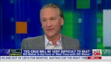 Appearing on CNN's Piers Morgan Tonight, Maher said Sen. Ted Cruz (R-Tx.) has a shot at becoming president in 2016 and will be very difficult to beat in the Republican primaries (video follows with transcript and commentary):