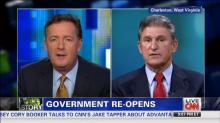 Morgan told the Democrat that "you sound eminently reasonable" and accused Sen. Ted Cruz of being the problem in Washington. "[H]e thinks that getting the shutdown was good business for Ted Cruz, Incorporated. What are you going to do about this young renegade who doesn't really care about being reasonable?" Morgan asked Manchin.