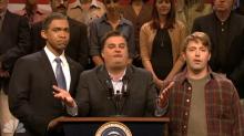 The cold open started on C-SPAN with Barack Obama played by Jay Pharoah speaking about the Affordable Care Act at Prince George’s Community College (video follows with transcribed highlights and commentary):
