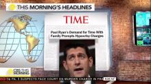 During CBS This Morning’s daily “Headlines” segment on Thursday, co-host Norah O’Donnell eagerly touted a piece by Time magazine which “reports on Congressman Paul Ryan accused of hypocrisy.” The CBS reporter mentioned no names who accused Ryan of “hypocrisy” when she promoted the article and instead noted that “Ryan said if he were to serve as House Speaker he would not give up spending time with his family. Critics say Ryan has opposed measures to help families.”