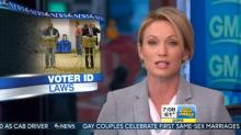 During the 7:00 a.m. hour, newsreader Amy Robach offered the following news brief: "Back in this country, restrictive new voter ID laws are on hold in Wisconsin and Texas this morning, just weeks before Election Day. A federal judge overturned it the Texas Law, comparing it to a poll tax designed to keep minorities from voting and overnight, the Supreme Court delayed implementation of Wisconsin’s voter I.D. law."