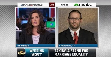 Towards the Good Friday edition of the 12 p.m. hour of programming she anchors, MSNBC's Contessa Brewer highlighted a Louisville Disciples of Christ minister who refuses to sign off on marriage licenses until same-sex marriage is legal in the Commonwealth of Kentucky.