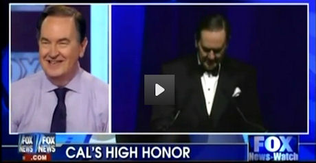 With “Cal’s High Honor” as the on-screen tag, the Fox News Channel on Saturday highlighted video of Fox News Watch panelist Cal Thomas receiving the Media Research Center’s “William F. Buckley Jr. Award for Media Excellence” at the MRC’s May 7 annual Gala featuring the “DisHonors Awards.”