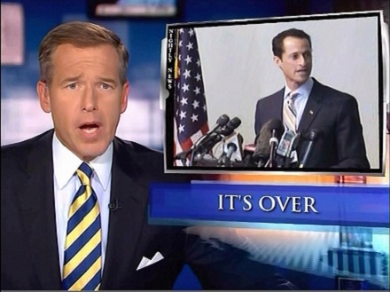 The evening-news producers were noticeably allergic. Four of NBC’s eight updates were the Williams 20-second brief, two occasions on which Lester Holt asked one Weiner question to David Gregory, and a 66-second update from Kelly O’Donnell. CBS only aired five evening stories, and in Scott Pelley’s debut on June 6, he delayed Weiner’s admission of guilt until minute 12.