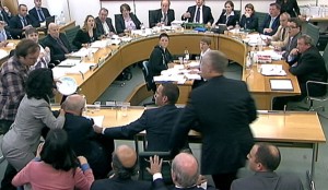 Having said this, I’m having some doubts about the heroic efforts of Rupert Murdoch’s wife to thwart the pie thrower. Now think about it. The whole hearing concerned media manipulation. Parliamentarians were gathered to learn what the Murdochs knew about the hacking and when they knew it. And the testimony didn’t go so well. Both Rupert and James Murdoch may have apologized repeatedly, but steadfastly refused to take the blame.