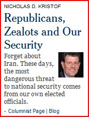 That is the view of Nicholas Kristof, as expressed in his New York Times column of today, "Republicans, Zealots and Our Security."