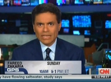 Zakaria is CNN's foreign affairs analyst and the editor-at-large for Time magazine, and recently made headlines for having had off-the-record conversations with President Obama on foreign affairs. He has praised the President's foreign policy multiple times and ripped Tea Party conservatives for being too extreme.