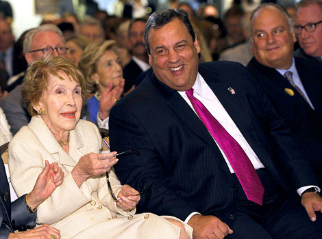The New York Times reported Sunday that Nancy Reagan is "pushing" New Jersey governor Chris Christie to run for president.