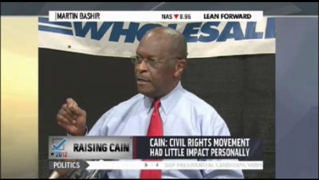 GOLDIE TAYLOR, THEGRIO.COM: I think, you know, around the turn of the century, people talked about, you know, some of our civil rights leaders as being sort of accommodationist, and I think that’s been the major thing for, for Herman Cain. If you look back at the incident that Rick Perry had with the offensive name of the family hunting grounds, when at first Herman Cain said, you know, it was insensitive. The next day he said he didn't have a problem with that word. I’ve got a problem with somebody who doesn't mind moving to the back of the bus. I’ve got a problem with somebody who doesn’t have a problem with that word. And so I think that's the real issue for Herman Cain.