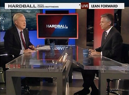 The Hardball anchor knocked Michele Bachmann as "looney tunes" and wondered how Huntsman could "sit next to a person who says there shouldn't be any taxes and have a reasonable conversation with her?" [See video below. MP3 audio here.]