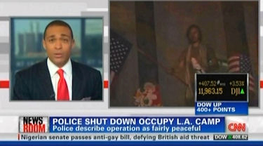 CNN's T.J. Holmes, reporting Tuesday on the eviction of "Occupy Los Angeles" and the subsequent arrests of 200 protesters, simply numbered the arrests as totaling in the "dozens." Apparently for CNN, over 16 dozen arrests still merits the count of "dozens" rather than "scores" or even "hundreds" or simply "200."