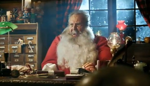 The Santa depicted in the commercial doesn't care much for the accompanying Christmas cards either.