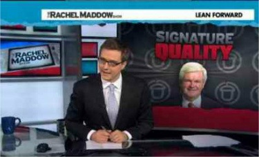 Gingrich was referring to his failure to qualify for the Virginia primary ballot, which he blamed on a paid signature collector turning in 1,500 fake signatures. "So, when it's ACORN," Hayes responded, "call in the federal government to investigate the political dirty tricks muscle of liberal Democrats. When it's Newt's own campaign (Gingrich's remarks heard again), oh, is that all? Well then, never mind."