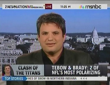That's how leftist sportswriter Dave Zirin concluded a January 8 column at EdgeofSports.com. So naturally Zirin was the perfect guest for MSNBC to bring on today to discuss the "polarizing" Tim Tebow. [MP3 audio available here; video posted below page break]