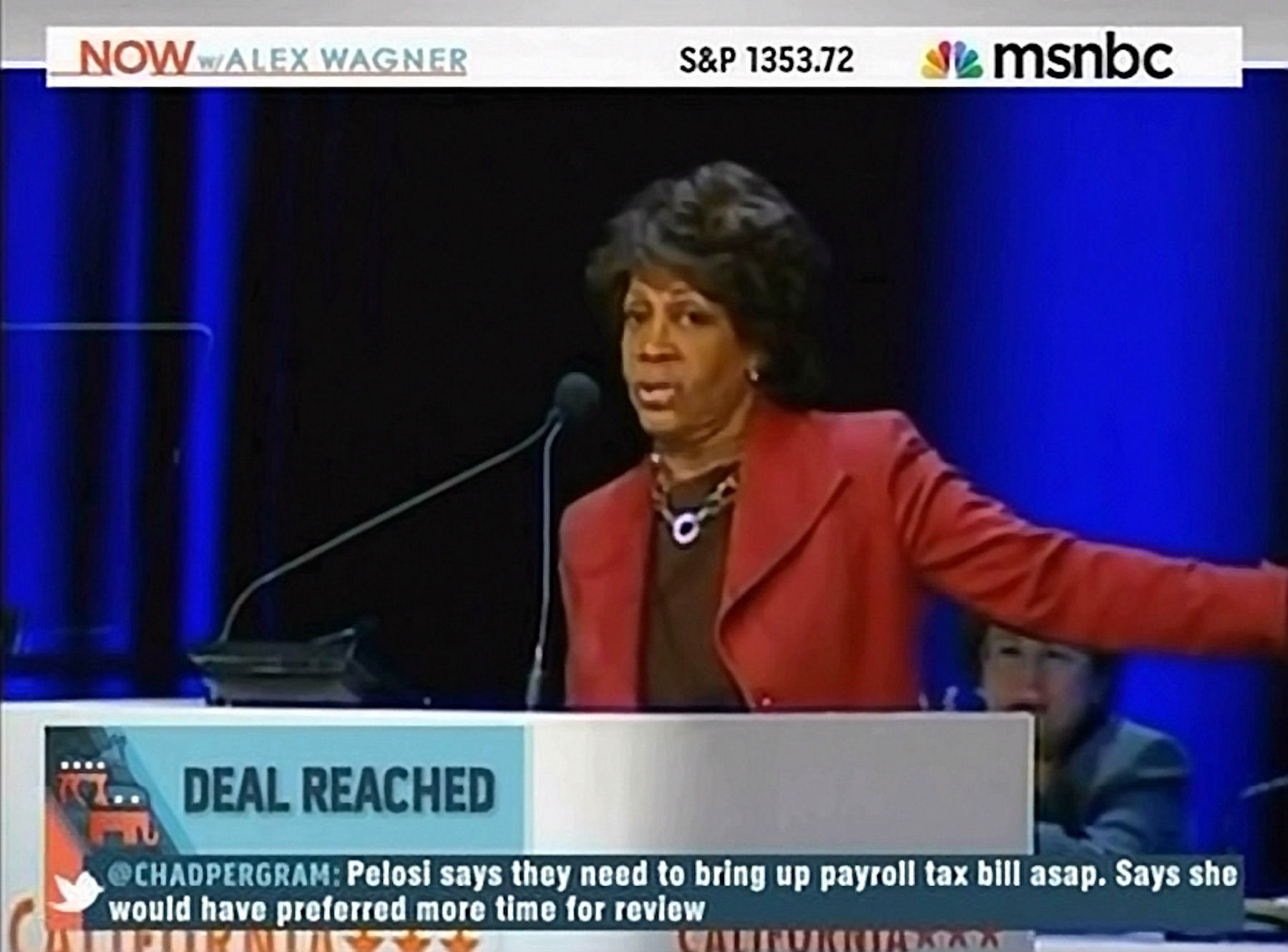 TYRANGIEL: I know, you know the numbers there. Congress is a weathervane. It always has been a weathervane. And so you know we can talk about Congress is getting more divisive. They represent people who have more divisive opinions. And so when Maxine Waters goes in front a Democratic, you know, a Democratic audience, she is going to call them demons and she's going to get applause. The wind blows that way. What I'm interested in is the payroll tax to me, you can say, this is no big deal, it's an easy one, right? And then they're going to go away. Actually, I wonder if the wind is beginning to change a little bit, and if the Republicans in Congress are saying, you know, I'm not sure we can get away with a year of nothing. We may need to work with the White House to get a couple things done, for our own good. Because we've got to get re-elected. And if we are the party of no, it's not going to work. Now the only way the wind changes is with the economy. We know that that's fickle. But to me, you can't say, you can’t give Congress so much agency that they're leading this fight. They're representatives.