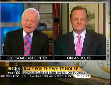 Instead of turning to one of the GOP candidates or a campaign spokesman, Thursday's CBS This Morning thought it fit to bring on Obama campaign senior adviser Robert Gibbs to discuss the last scheduled Republican presidential debate. Charlie Rose and Bob Schieffer didn't play hardball with Gibbs, like they did with Rick Santorum and Newt Gingrich, but went easy on the former presidential press secretary.