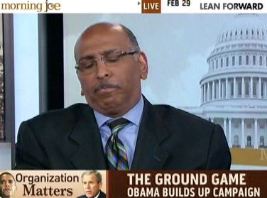 Morning Joe likes to think of itself as the most scintillating three hours on morning TV. But did the show have a soporific effect on Michael Steele? When the camera cut to him today at 7:50 ET today, Steele appeared to be, well, I believe the polite term is "resting his eyes." Hat tip NB reader Susan J, who points out Steele is due considerable slack since he was up late doing primary coverage for MSNBC.