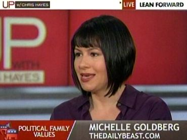 Snark on, Michelle! On the MSNBC show "Up With Chris Hayes" this morning, feminist author Michelle Goldberg attacked Ann Romney as "insufferable" and derided a phrase in Ann's op-ed on the subject of motherhood as "creepy."