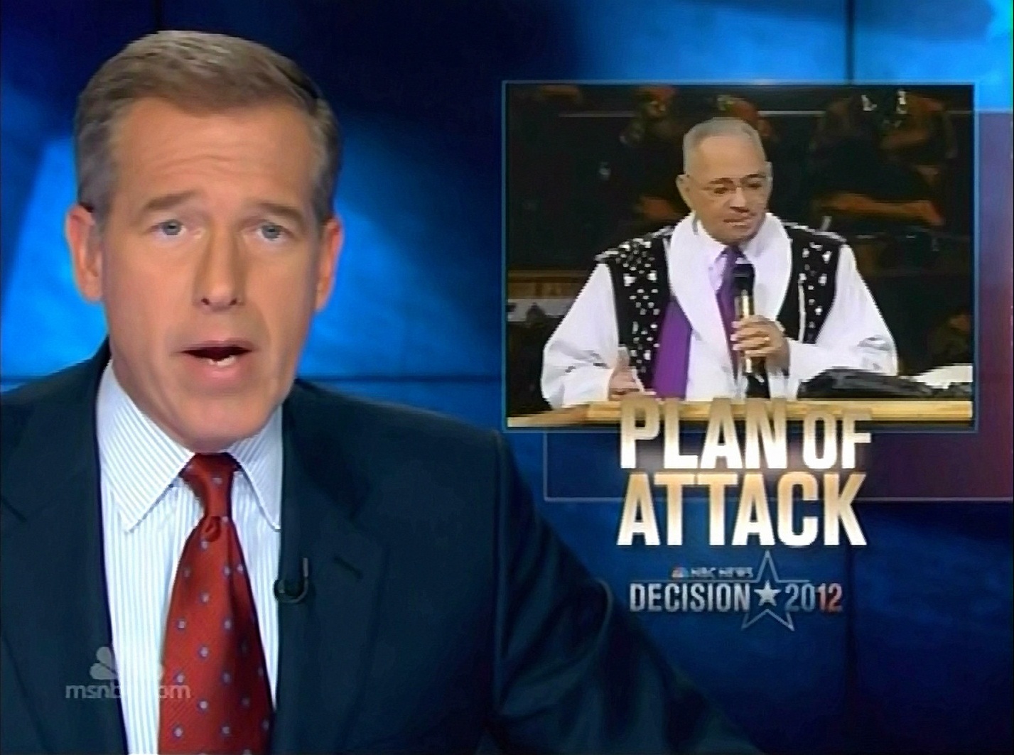 On Thursday's NBC Nightly News, anchor Brian Williams decried a pitch to use President Obama's former radical left-wing pastor Jeremiah Wright in a campaign ad: "...there was an explosive headline this morning. The New York Times reporting that a Republican super-PAC was considering an expensive anti-Obama ad campaign that would have put the issue of race front and center in the campaign..."