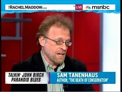 Not content with letting partisan liberal journalist Joe Klein review "radical Republican" Jonah Goldberg's new book The Tyranny of Clichés, the May 18 edition of the paper's Book Review podcast opened with book editor Sam Tanenahus talking with Klein about his hostile Times book review. Tanenhaus (pictured), author of a little screed called The Death of Conservatism that was discredited within months of its 2009 publication by the rise of the Tea Party, spent the first 14 minutes of the podcast slamming Goldberg's book along with Klein.
