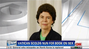 KATE BOLDUAN: Strong words from the Vatican, condemning a book on same-sex relationships, remarriage after divorce, and sex. Its author: a Catholic nun. Sister Margaret Farley's book is called "Just Love: A Framework for Christian Sexual Ethics." In it she offers a theological rationale, really, for what the Church views as taboo topics including same-sex relationships and other things that we listed right there. Sister Farley insists that the text of her book was not intended to be an expression of the Church, but the Vatican says that the opinion is quote, "not acceptable."