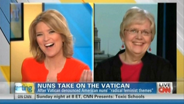 So it was no surprise that CNN has been promoting a dissenting nun's struggle with the Vatican, and making clear that it is siding with wayward American nuns after the Catholic Church has announced a reform of the Leadership Council of Women Religious (LCWR). Anchor Christine Romans tossed softball after softball to liberal Sister Maureen Fiedler on Tuesday's Starting Point, and mocked the Vatican's criticism of the LCWR.