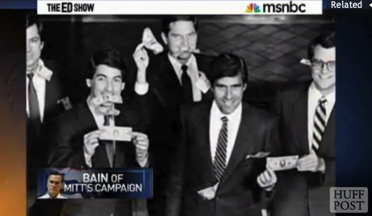 One of the quotes in the Huffington Post video was from left-wing talking head and MSNBC host Ed Schultz who described the private equity firm as “strip mining” companies on “The Ed Show.” It also included former MSNBC anchor David Shuster saying on Current TV that Bain was practicing “vulture capitalism.”