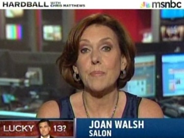 Today we offer Joan Walsh into evidence.  Appearing on the weekend edition of MSNBC's "Hardball," the Salon editor accused Ann Romney of throwing a "tantrum" over her husband's decision to release no more than two years of tax returns.  View the video after the jump.