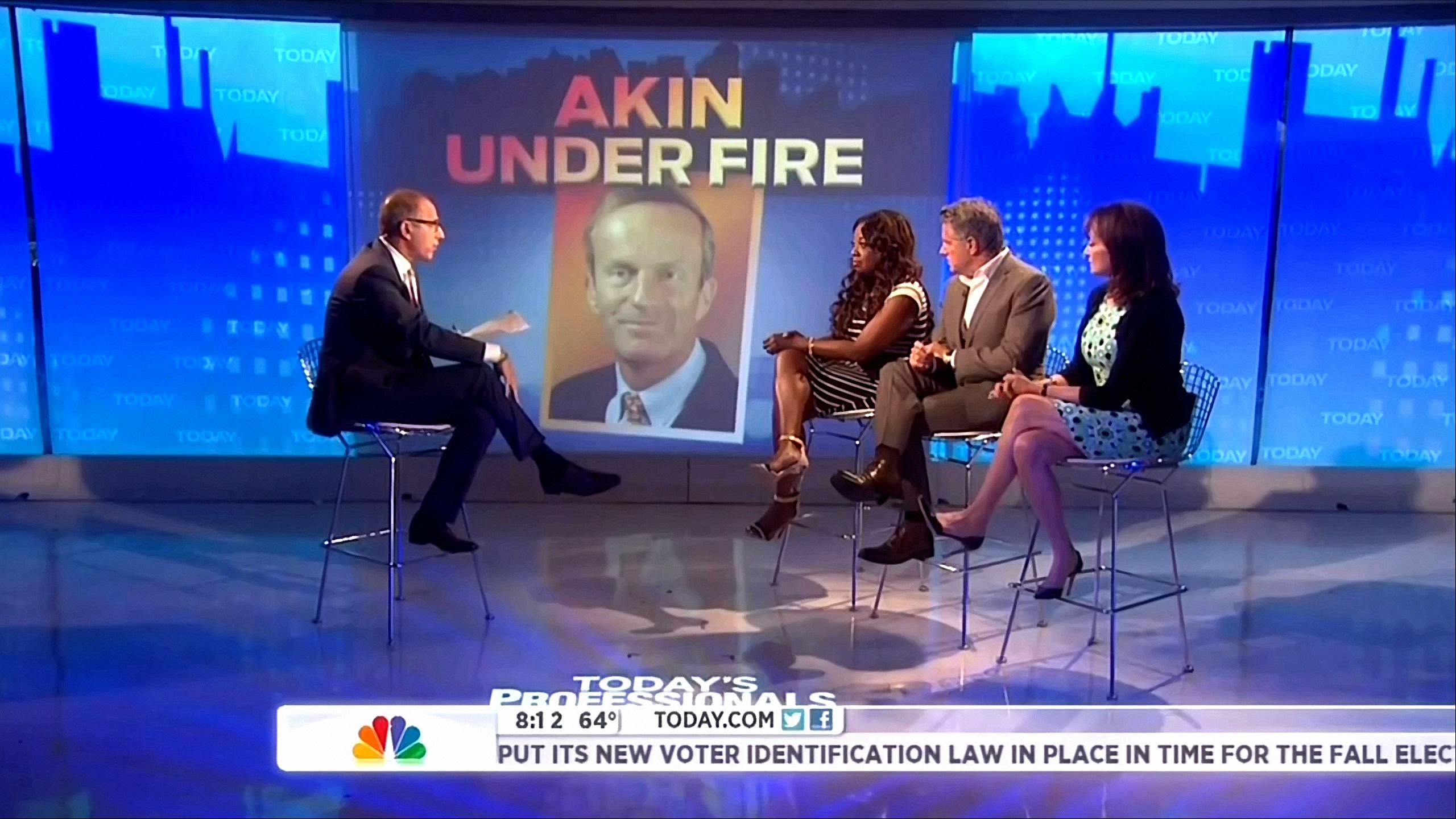 During the Today's Professionals panel segment on Tuesday's NBC Today, attorney Star Jones predicted that if Todd Akin continues his Senate run in Missouri, the entire Republican Party will be branded with his controversial remarks: "If he doesn't [get out], the Romney/Ryan ticket is going to be tarred with this feather for the entire campaign. They sponsored bills together that pretty much echo this sentiment." [Listen to the audio or watch the video after the jump]