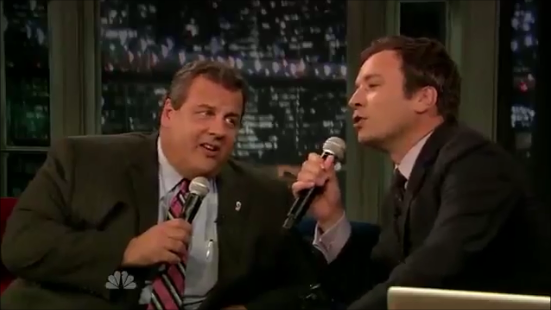 On NBC's Late Night Tuesday, Christie launched into a duet of the Springsteen classic "Thunder Road" with host Jimmy Fallon.