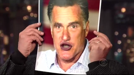 On CBS's Late Show Friday, Billy Crystal showed up with a picture of Romney with the mouth cut out and proceeded to ridicule the Republican presidential nominee with the assistance of host David Letterman (video follows with transcript and commentary):