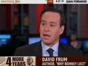 Frum touted his upside-down take on the media during a Morning Joe appearance today while promoting his instant e-book, "Why Romney Lost." Joe Scarborough liked the line so much he asked Frum to repeat it. Frum refused to name names, saying he does so in his book, but do we doubt whom he was targeting? View the video after the jump.