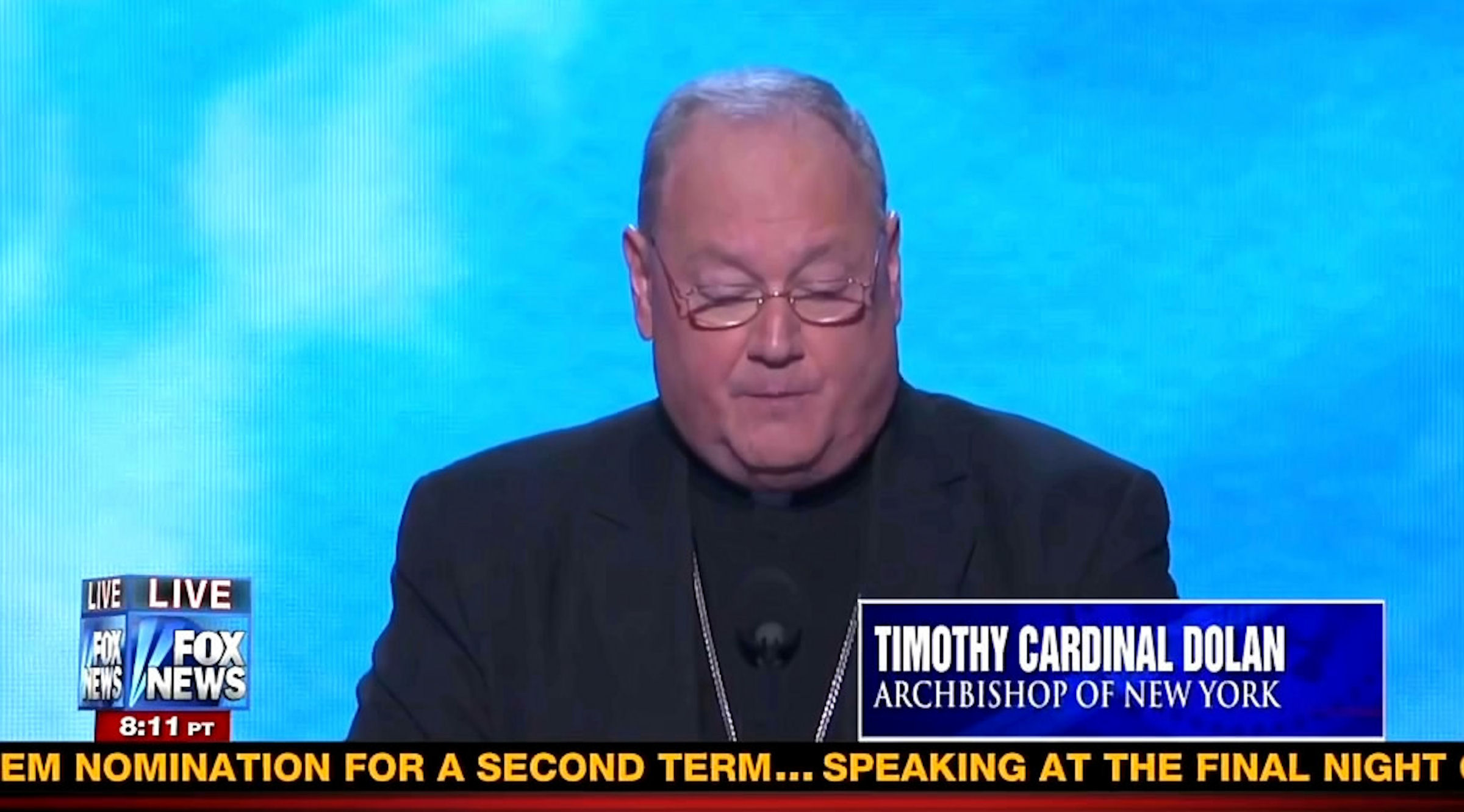 They must’ve listened to Donohue’s advice, but the major networks had no interest in giving the Cardinal any respect – cutting him off before the prayer even started.