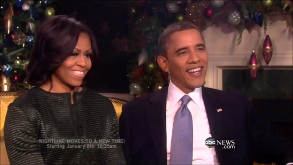 During a predictably gooey interview with Barbara Walters on ABC's Nightline Wednesday, the President joked about his daughter Malia dating boys saying, "I always talk about how one of the main incentives for running again was continuing secret service protection so there are men with guns around at all times" (video follows with transcript and commentary):