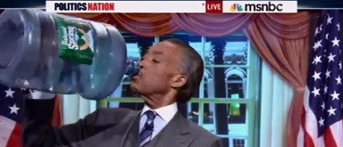 “But what Rubio was saying before and after his water cooler moment wasn’t so funny. That’s coming up, right after I finish my drink,” Sharpton said before taking yet another drink of water, this time from a five-gallon container.