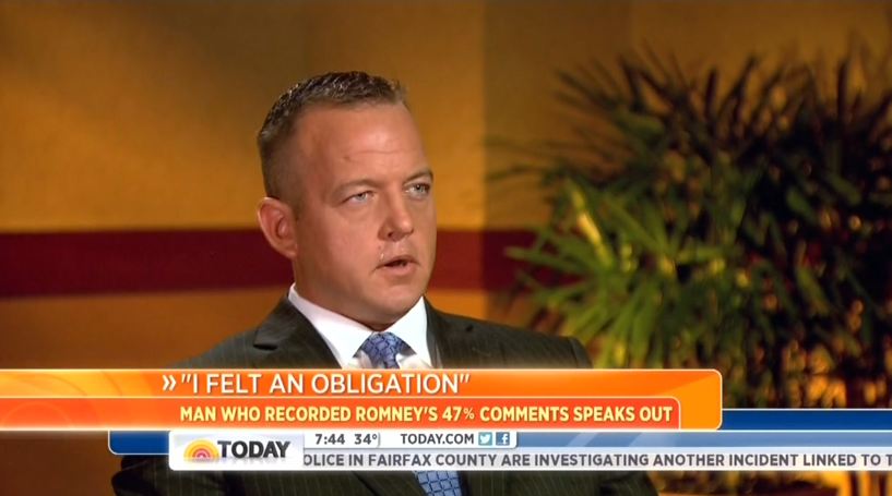 PETER ALEXANDER: Matt, good morning to you. Even today some political observers insist without that 47% tape, we might actually be talking about President Mitt Romney these days. Instead, the infamous comments marked what was really a campaign game-changer. And now months later, the man behind that tape has finally come forward.