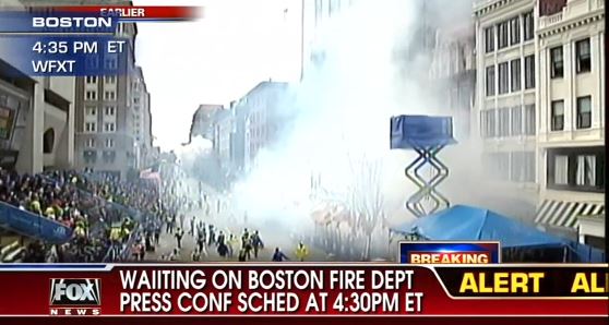 Obviously, nobody knows anything yet, but I would caution folks jumping to conclusions about foreign terrorism to remember that this is the official Patriots Day holiday in Massachusetts, celebrating the Battles at Lexington and Concord, and that the actual date (April 19) was of some significance to, among other people, Tim McVeigh, because he fancied himself a waterer of the tree of liberty and the like.